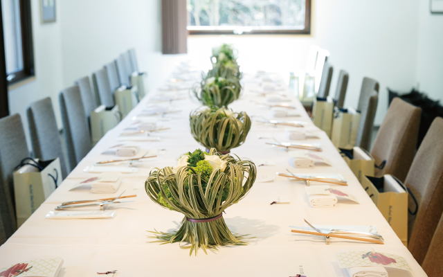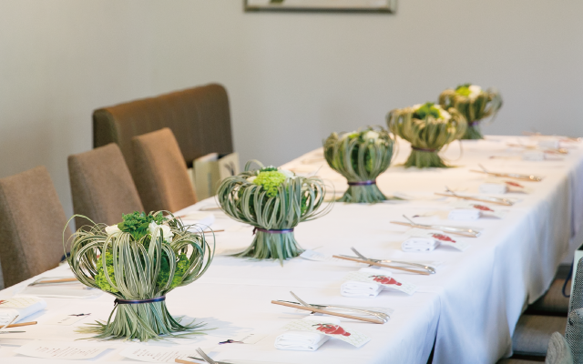 エントランスや、テーブルを季節のお花で装花します。